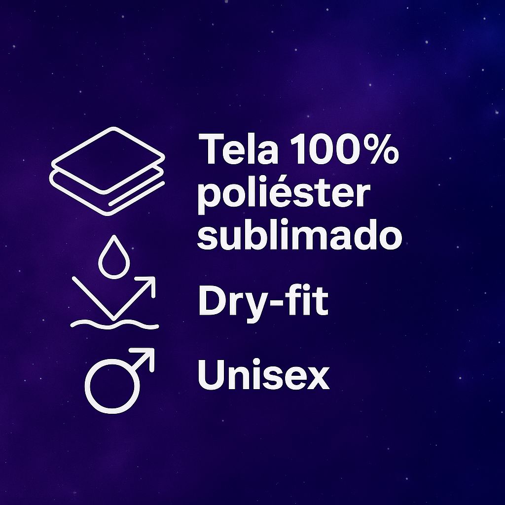 La mayoría de nuestras piezas son elaboradas en poliéster con tecnología "dry-fit", resistente al lavado y con colores vibrantes y duraderos.